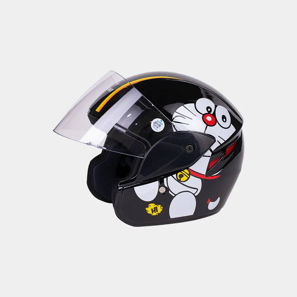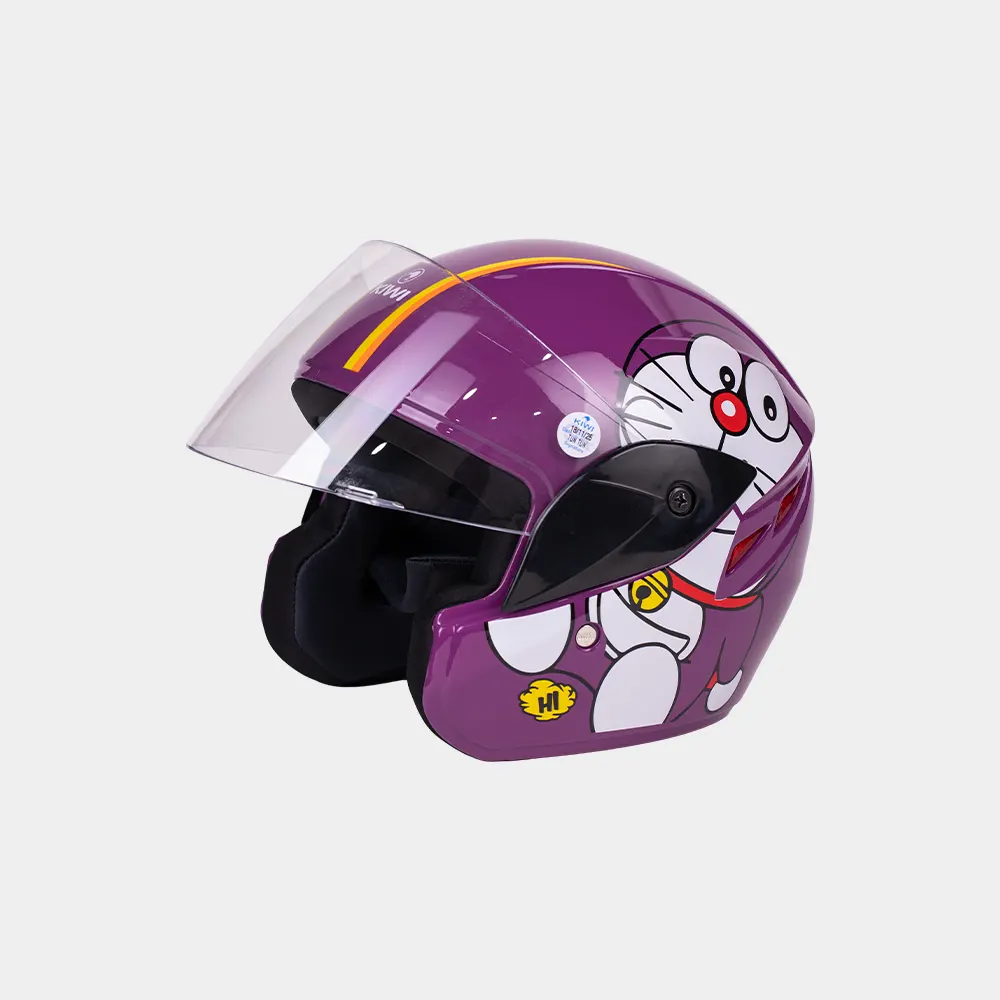 Equipped with a silicon coated visor , it features a clear outer visor for enhanced visibility in all lighting conditions. The helmet includes dynamic ventilation for improved airflow, and a quick-release chin strap for added convenience. The interior padding is made from hypoallergenic fabric to ensure long-lasting comfort.Kiddos helmet features bright graphics with supertheroes, animals, racinig cars , stars, cartoons, space thermes, flowers, and fun patterms.vibrant colors, reflective stickers, and playful characters make helmets attractive , safe, and exciting for children.